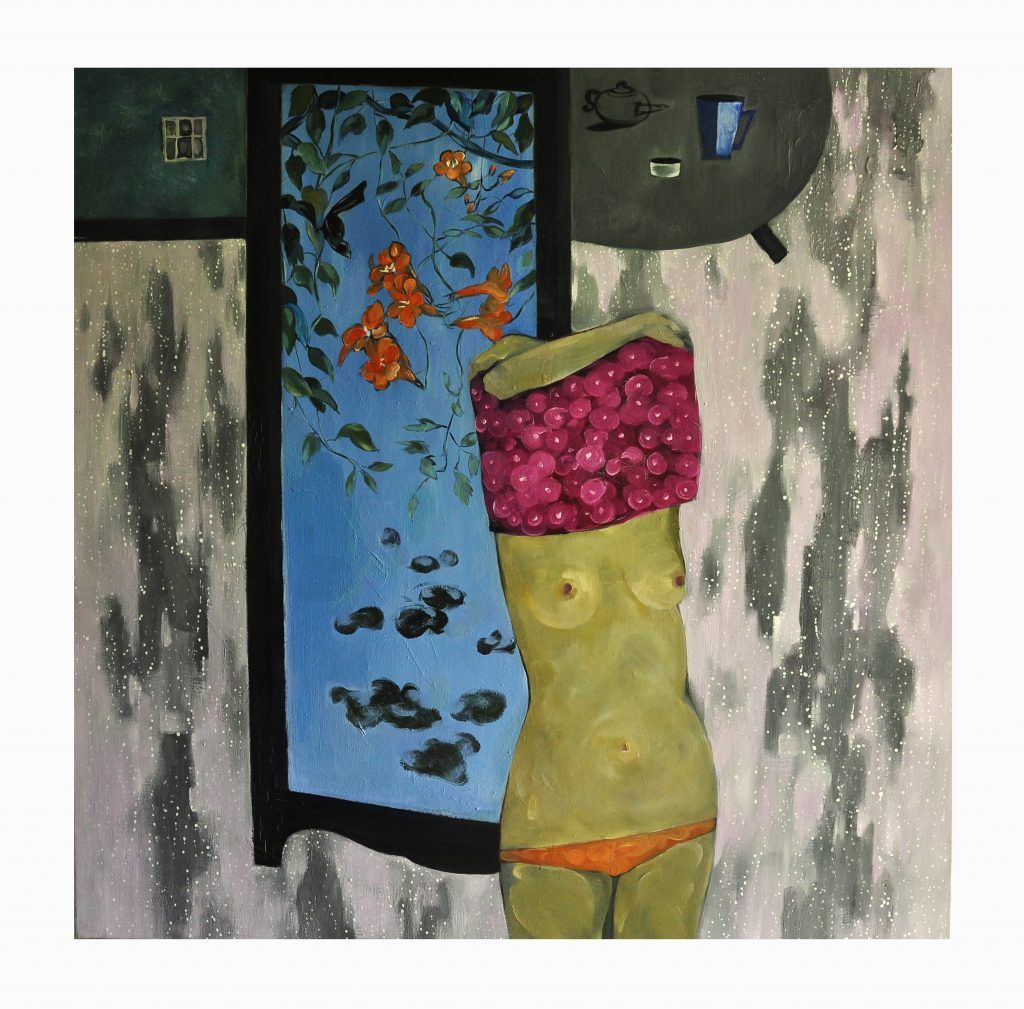 Thiếu nữ bên bình phong I – The women beside Binh phong- Sơn dầu – oil on canvas – 122x 122cm – 2013